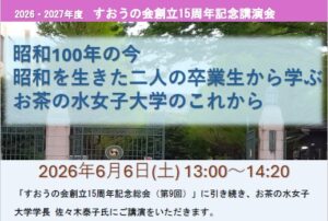 「昭和100年の今、昭和を生きた二人の卒業生から学ぶお茶の水女子大学のこれから」 お茶の水女子大学被服学関連学科同窓会「すおうの会」では、下記の通り創立15周年記念講演会を開催いたします。 【日時】2026年6月6日(土 […]