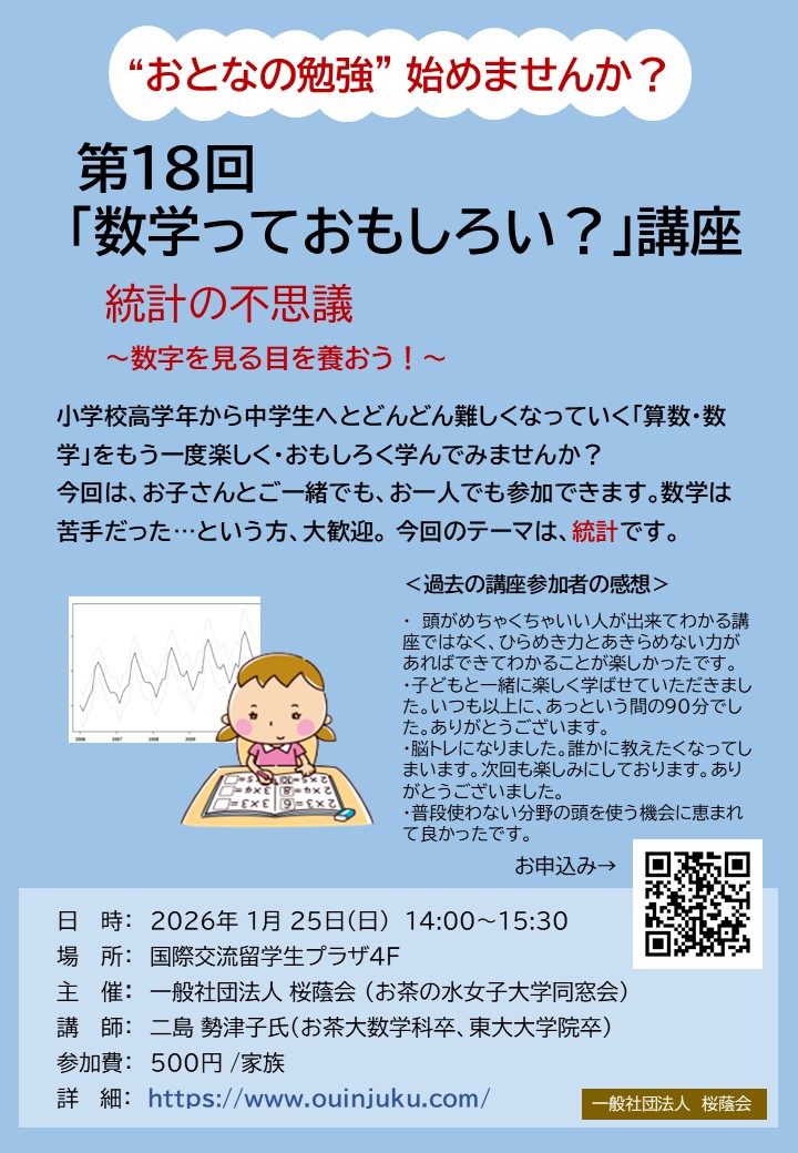 小学校高学年から中学生へとどんどん難しくなっていく「算数・数学」をもう一度楽しく・おもしろく学んでみませんか?お子さんとご一緒でも、お一人でも参加できます。数学は苦手だった・・・という方、大歓迎。