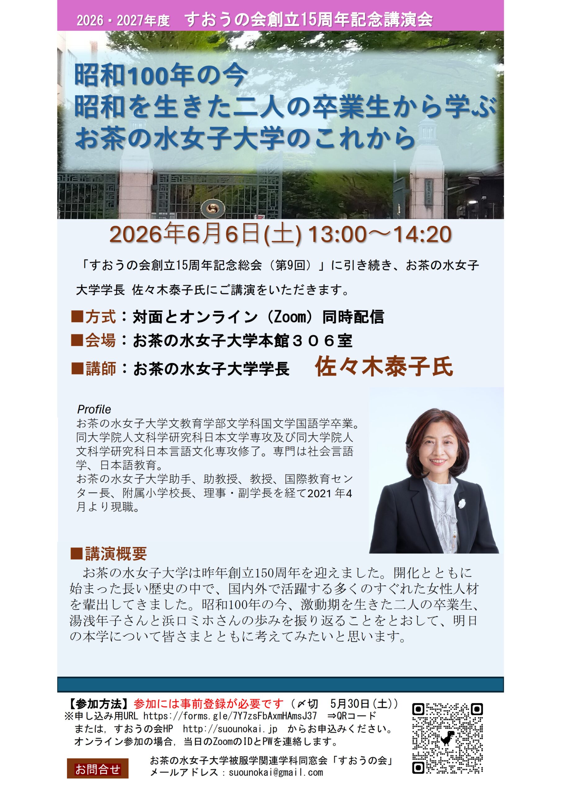 お茶の水女子大学被服学関連学科同窓会「すおうの会」では、下記の通り創立15周年記念講演会を開催いたします。